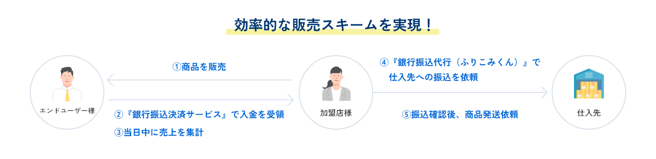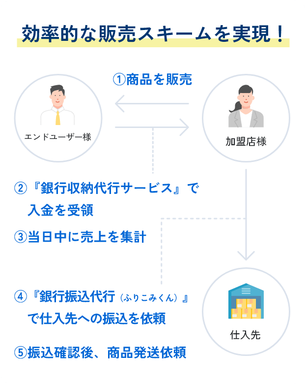 仕入れと販売を同時に実現できるビジネスモデルにも対応可能な、先進的なサービスとしてご活用いただけます。それぞれのサービスを併用することで、さらなるキャッシュフローの効率化を実現。資金繰りに余裕を持たせたスマートな運用が可能になります。